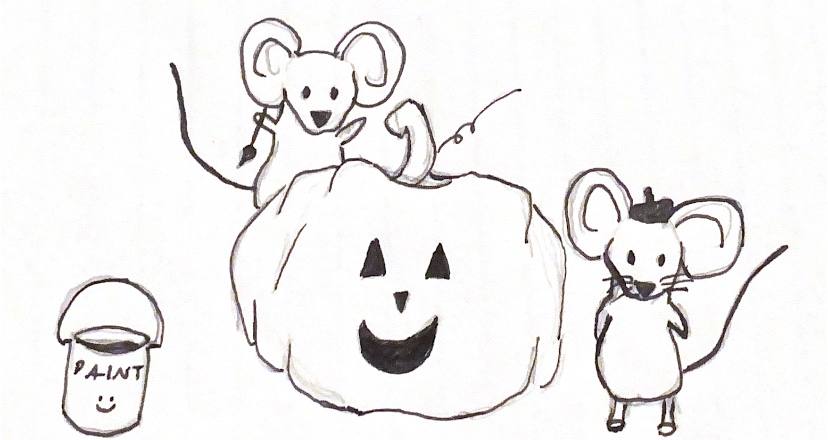 A mouse would probably give its pumpkin whiskers, but this doodle is simple enough.